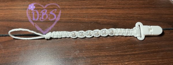 DBS Special Offer - White Macrame' with Pearls Pacifier Holder Clip
