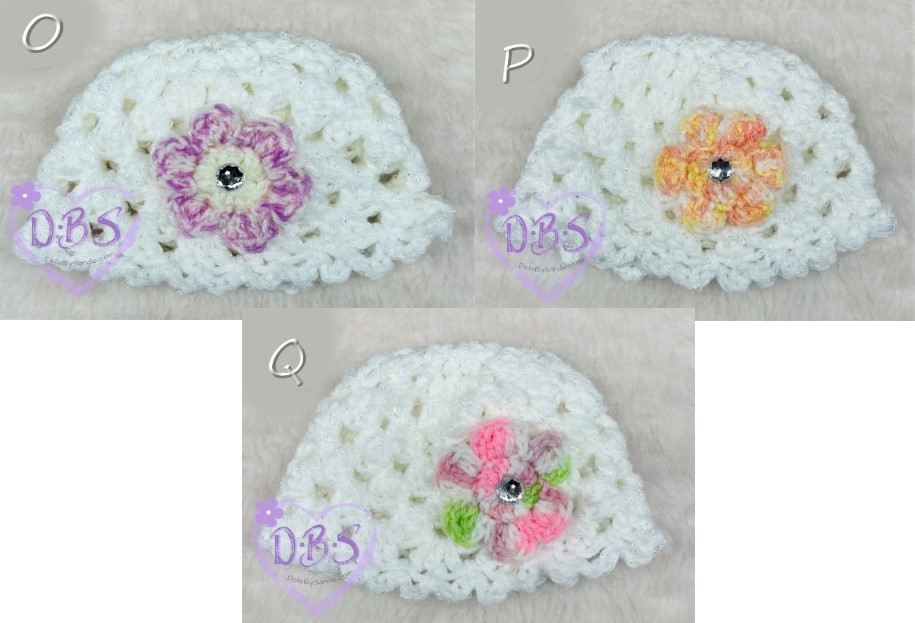 White Handmade White Crochet Hat with Pastel Flower Colors - Your Choice