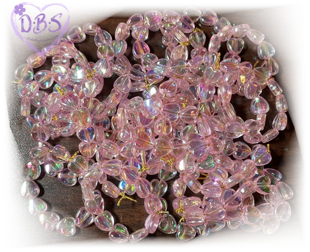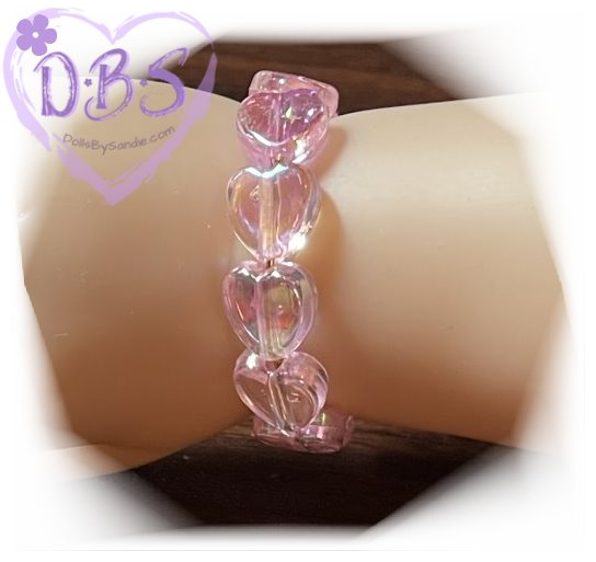 Bracelets - Sandie's Handmade Doll Bracelet - Pink Iridescent Hearts